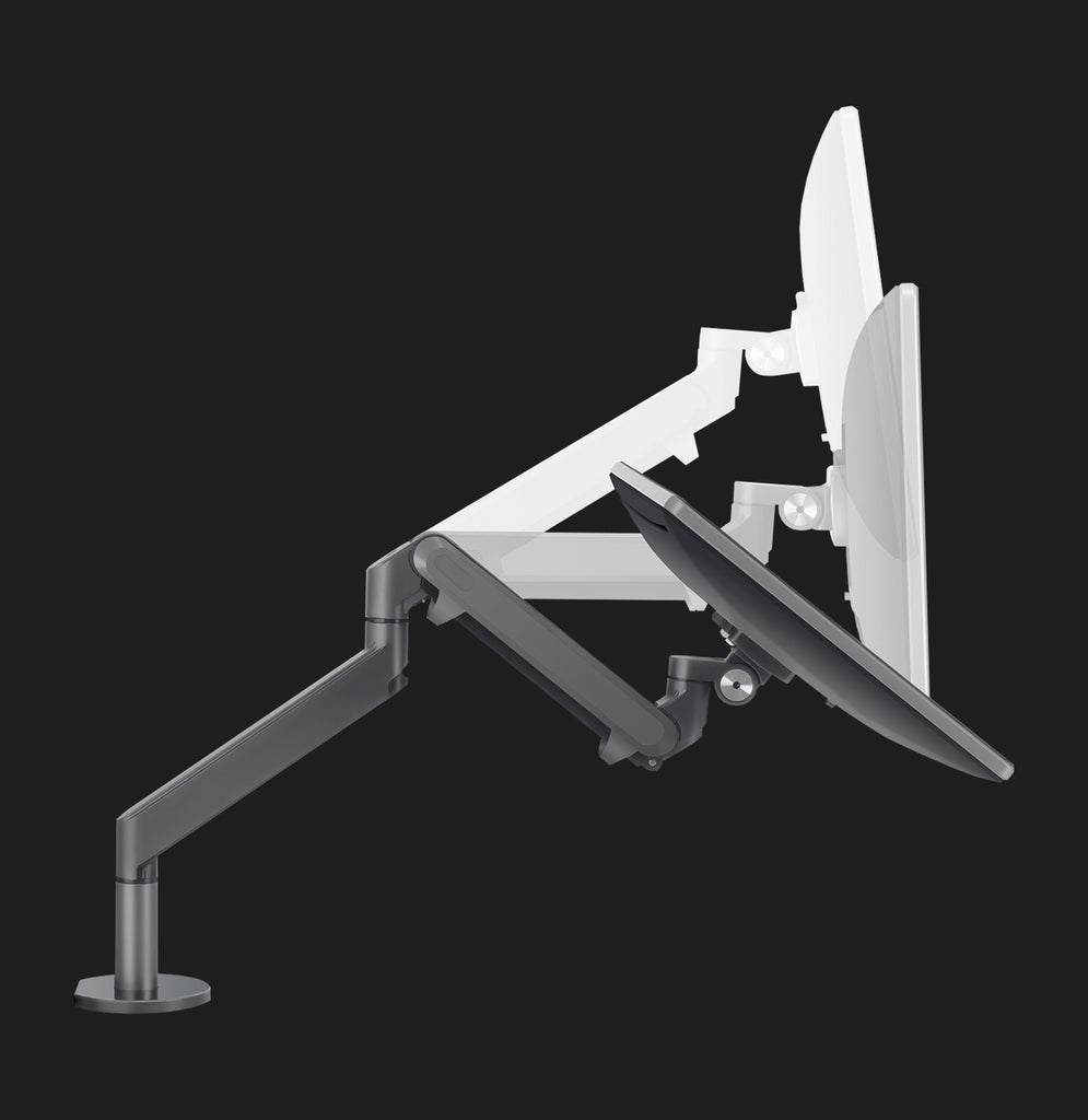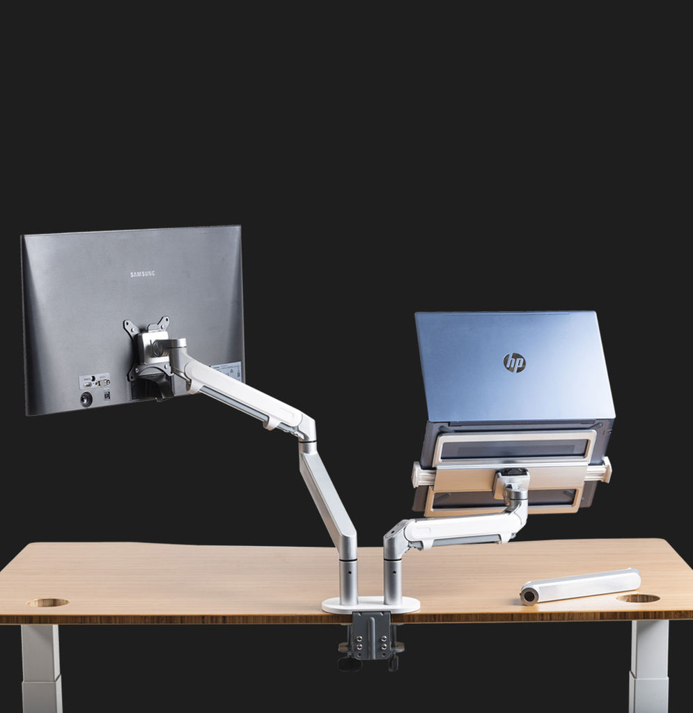 ¿Quieres tener la libertad de mover tus monitores donde sea? El brazo para monitor/laptop dual de resorte a gas es perfecto para los jugadores que no tienen una sola posición para jugar. Está hecho para esos jugadores activos que tienen la necesidad de girar, rotar, subir, bajar o desplazar sus pantallas. ¡Sobre todo para esas partidas difíciles!
