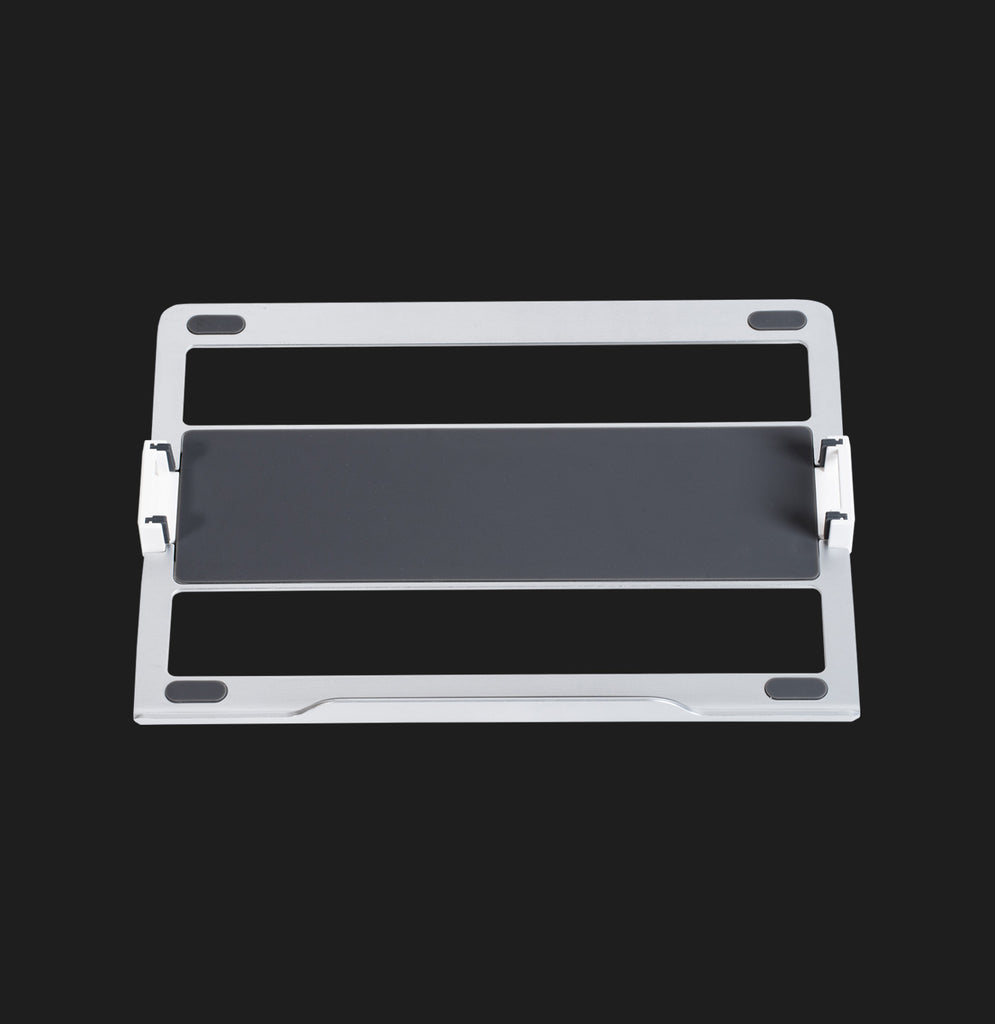 El soporte laptop gamer te permitirá posicionar tu computador portátil a la altura que más te acomoda y ganar espacio en tu SETUP. Es ideal para que lo combines con nuestro brazo para monitor dual de resorte de gas o el brazo monitor dual de poste. También sirve para los brazos individuales BR31 silver y grafito.