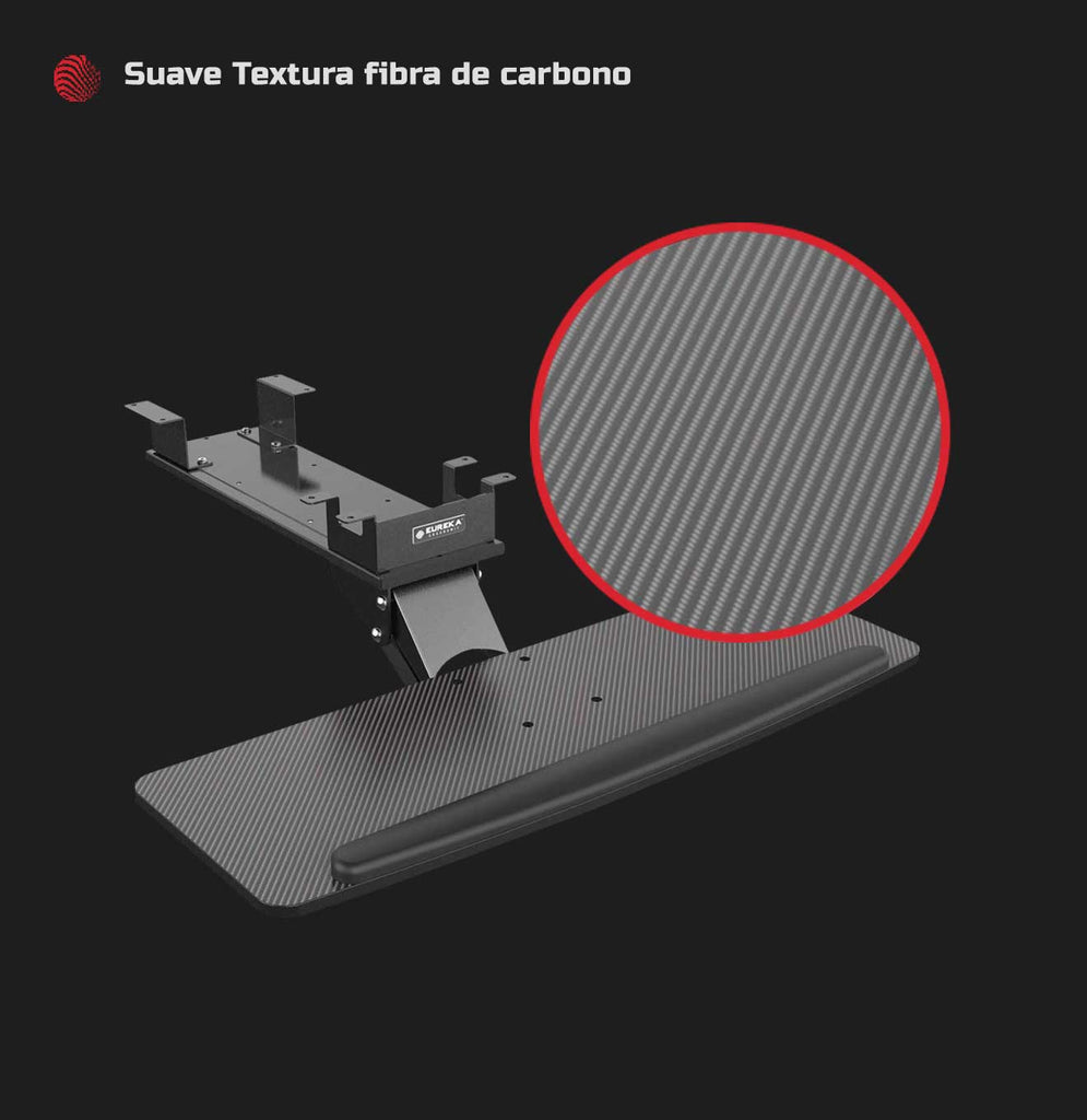 Si quieres profesionalizar tu espacio para tener mayor agilidad en el juego y espacio sobre la cubierta de tu setup gamer, esta bandeja soporte teclado negra será ideal. Esta bandeja de teclado es apta para cualquier escritorio gaming, ya que tiene una espectacular textura de fibra de carbono que ayuda a controlar la sensibilidad del juego. Además, incluye mousepad con diseño y es muy fácil de instalar.