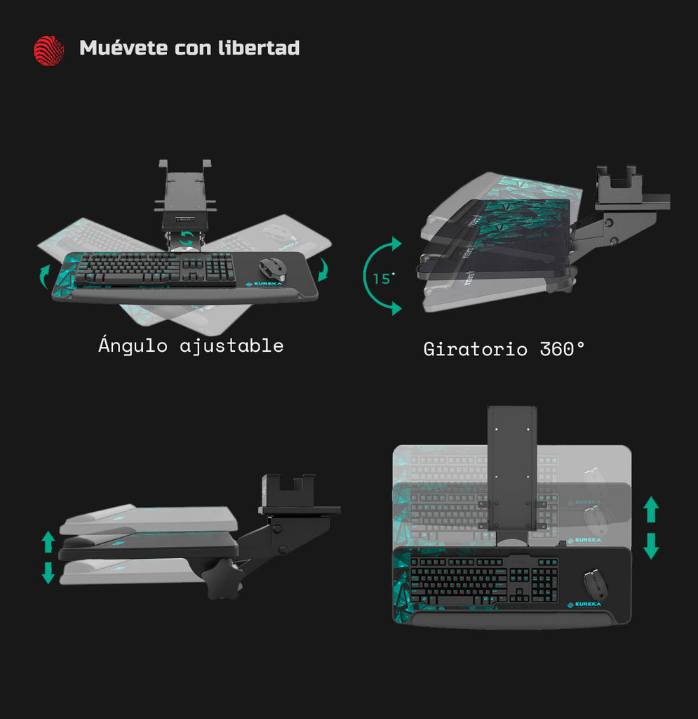 ¿Necesitas que tu teclado esté a la altura y ángulo perfecto? Con la instalación de la bandeja soporte teclado negra tendrás la opción de girar, subir, bajar e inclinar como tú prefieras. Si eres de los que necesita moverse con libertad, este producto es perfecto para complementar tu zona gamer.